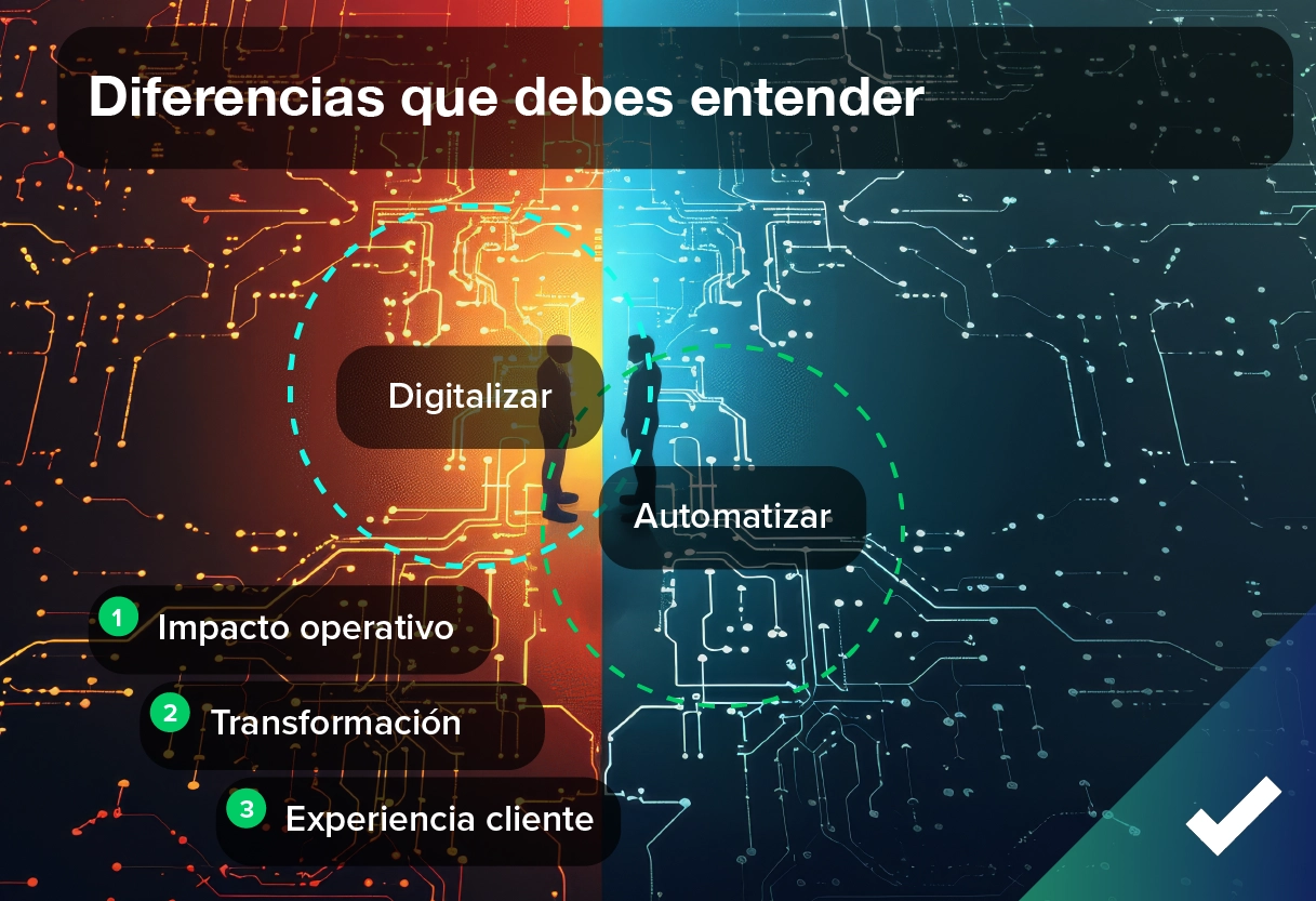 Cuando se intenta automatizar sin haber digitalizado correctamente, los procesos carecen de consistencia. Por otro lado, cuando se digitaliza sin plantear automatización, se generan sistemas modernos que sostienen procesos antiguos.