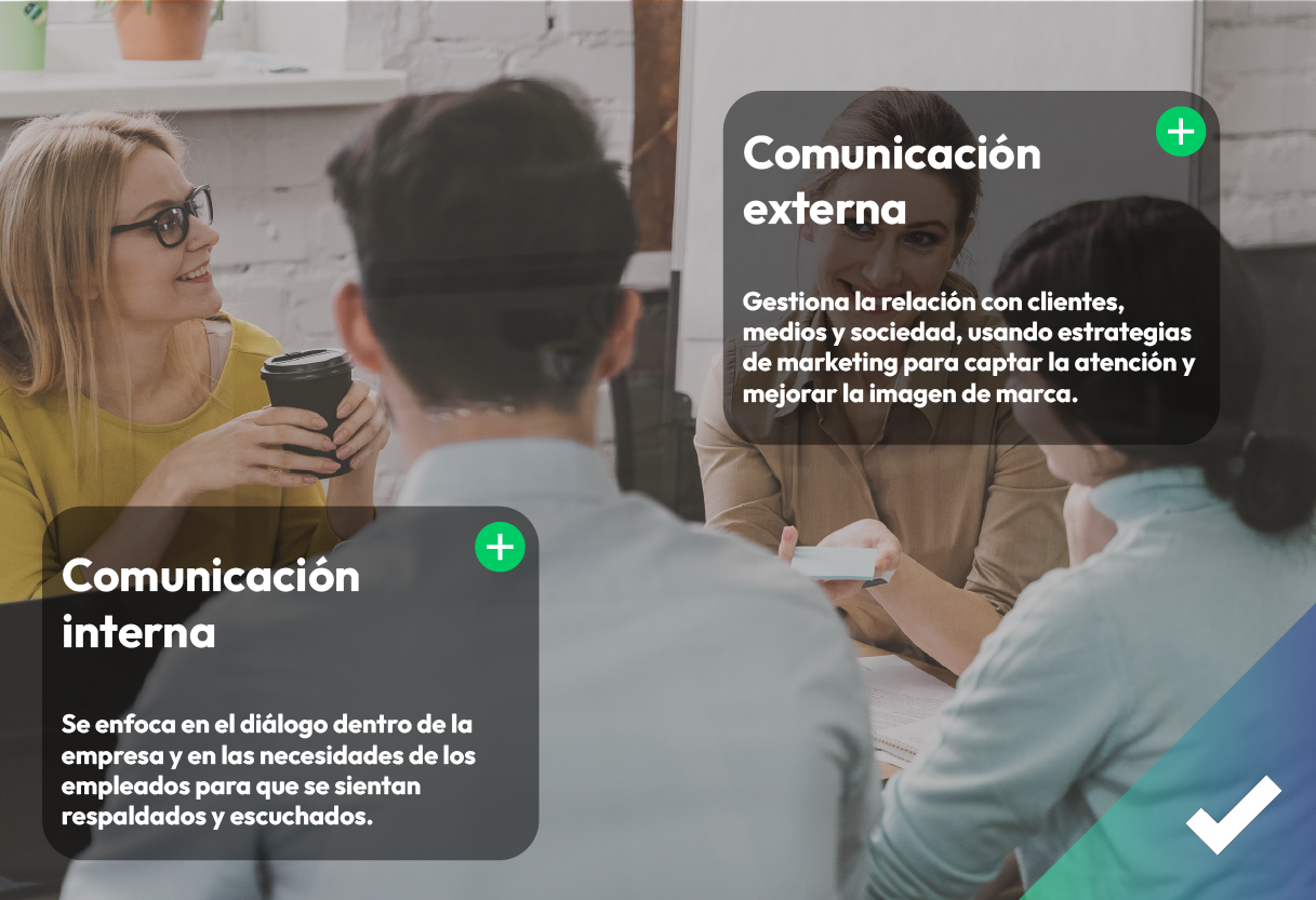 La comunicación externa gestiona la relación con clientes, medios y sociedad, usando estrategias de marketing para captar la atención y mejorar la imagen de marca. Mientras que la comunicación interna, en cambio, se enfoca en el diálogo dentro de la organización: cómo se informa, cómo se escucha y cómo se construye cultura. Se centra en las necesidades de los empleados para que se sientan respaldados y escuchados por la empresa.