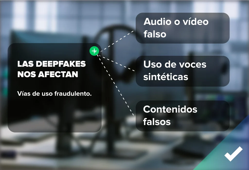 Suplantación de identidad (Phishing avanzado): un atacante podría enviar un vídeo o un audio falso de un directivo o un compañero solicitando una transferencia urgente de fondos o el acceso a datos confidenciales.